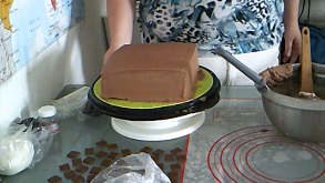 Then I iced the cake, trying to keep the corners as sharp as I could.